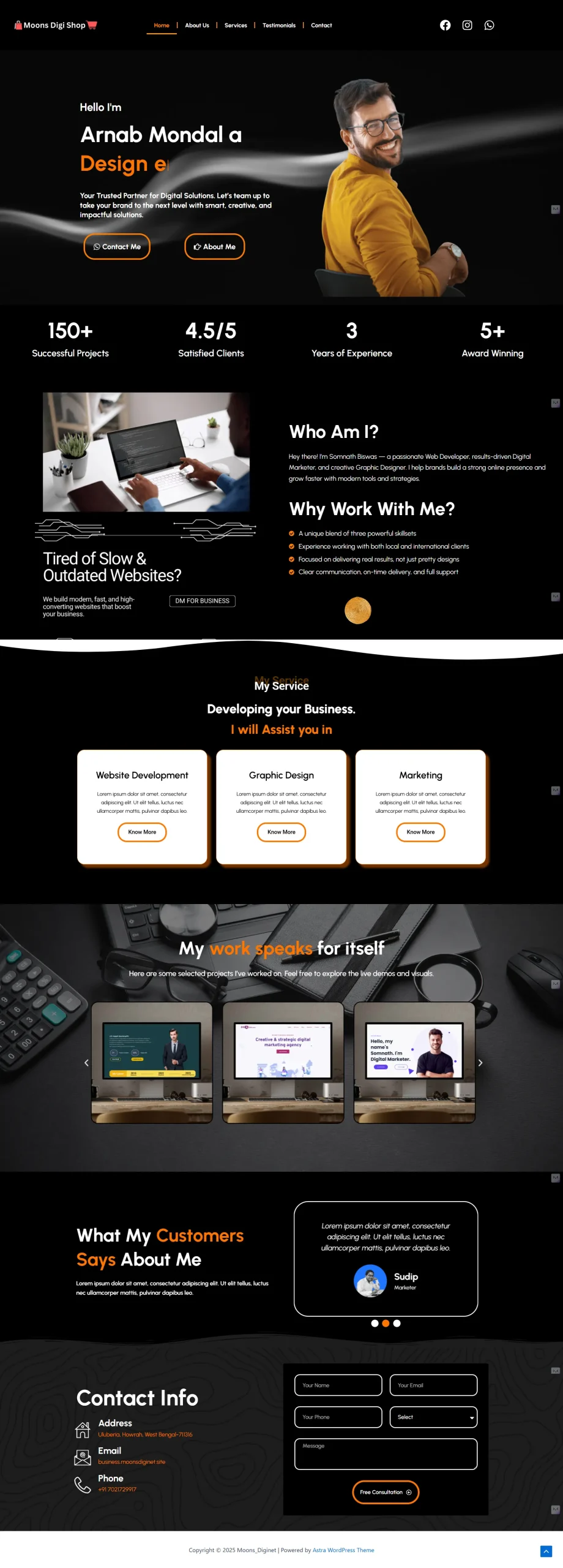 I am Arnab Mondal, a passionate and skilled Web Developer, Digital Marketer, and Social Media Manager, specializing in creating high-performing websites and digital solutions. With expertise in WordPress design, Canva graphics, and Facebook Ads Management, I help businesses grow their online presence and attract more customers.